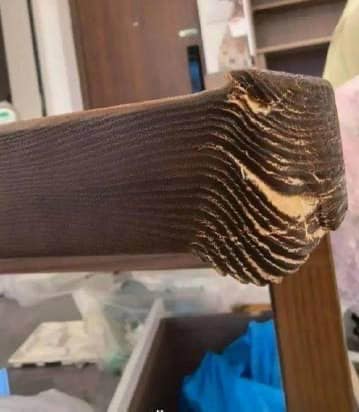 但餐桌送到家後卻發現運送途中桌子因收到嚴重撞擊而變形,
