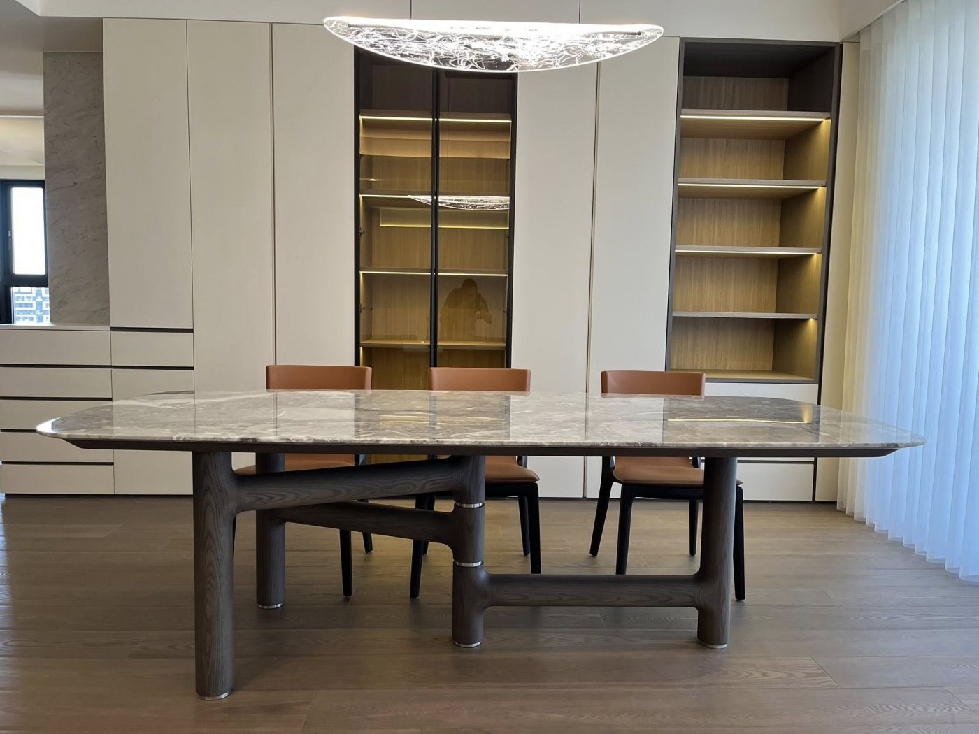 像這張餐桌,腳座設計簡潔俐落