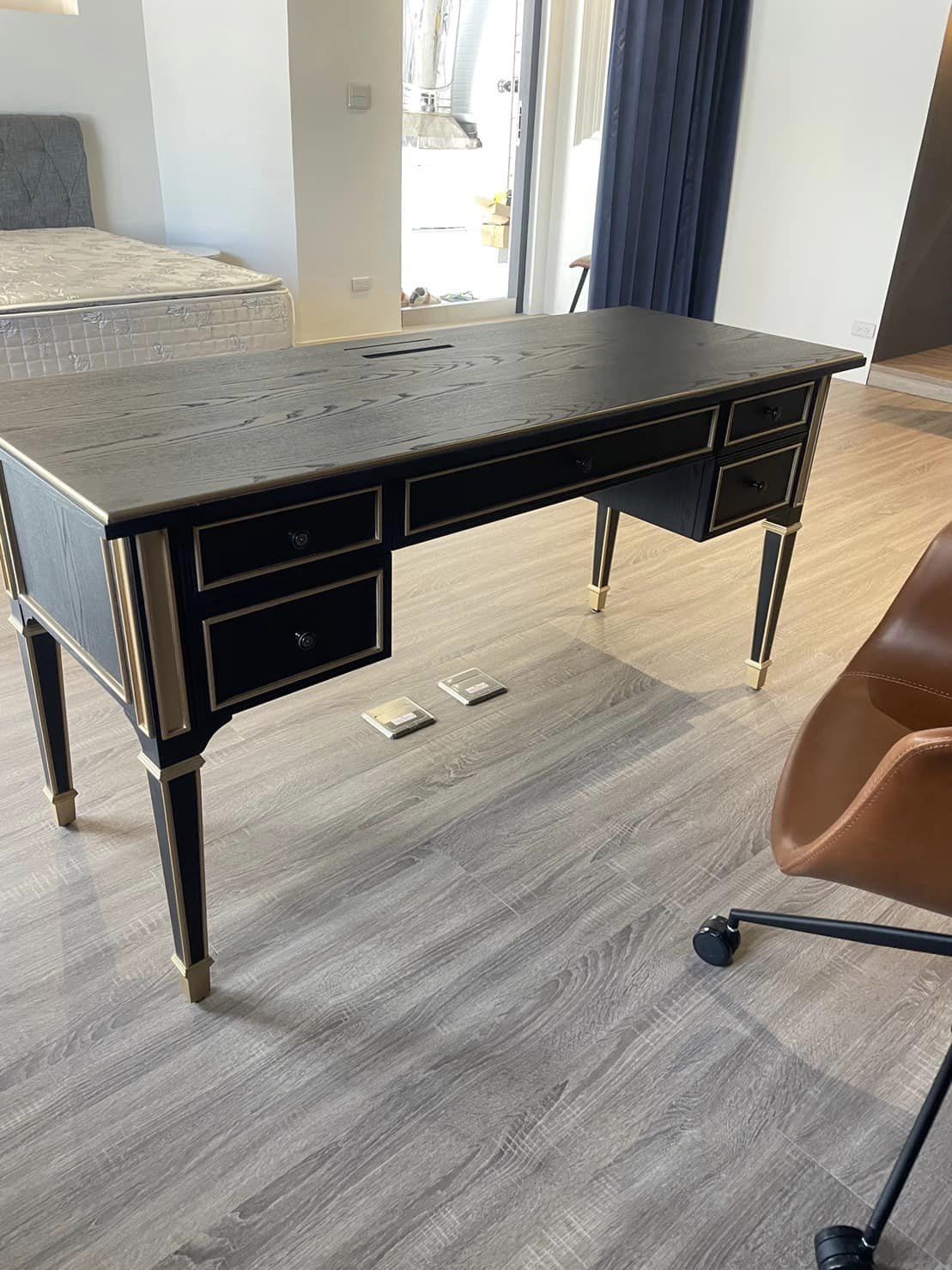 #古典書桌 #線版 #實木皮 #古典把手 #辦公桌