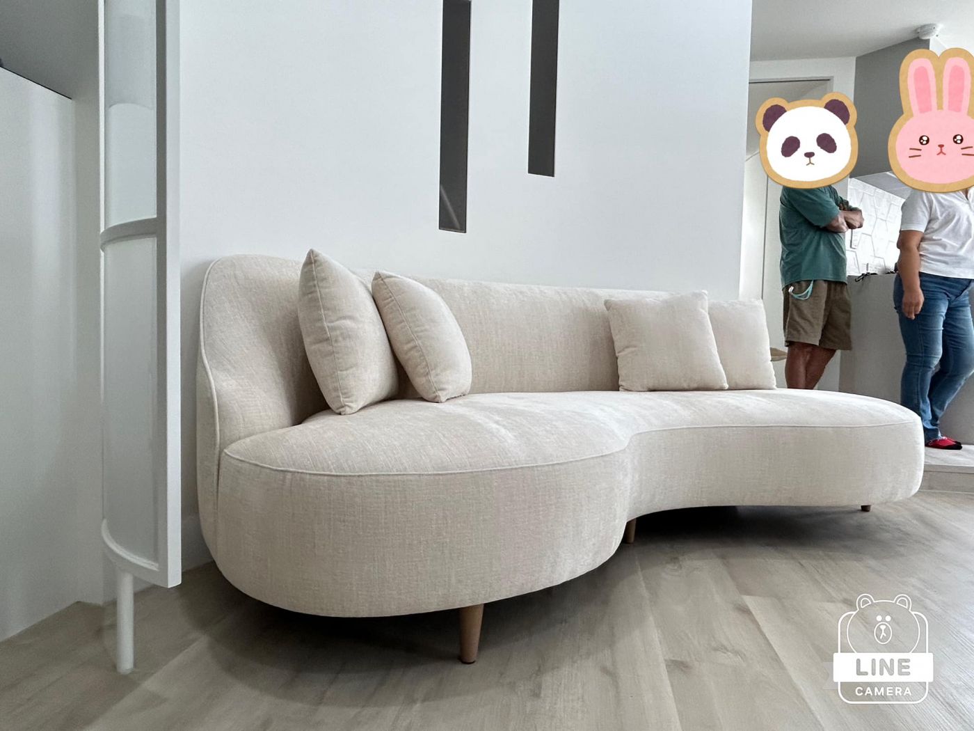 一入門弧型的沙發與牆面