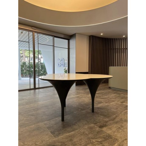 這張桌子已經存放在我圖庫很久了 一張我很喜歡的樣式 但以我做訂製傢俱經驗來說 它是一張極不好施作產品 整張需要用實木下去塑形 鐵件結合木作地方收尾 內崁石材桌面的穩定性等 所以它一直不是我想要去碰的款式 不管是提案或者業主討論時候 都會下意識盡量避開它,因為怕做不好 但今天...
